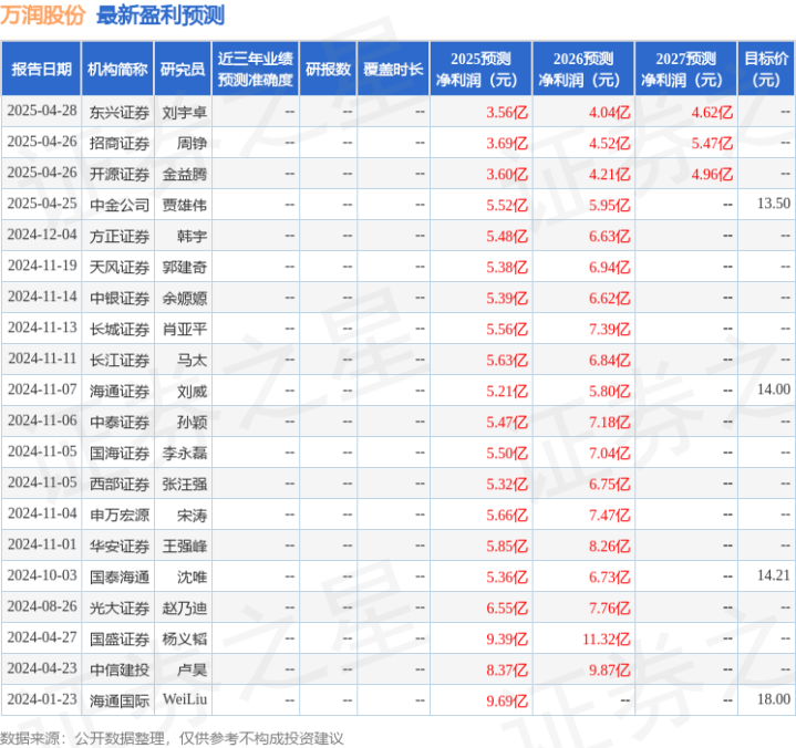 最新盈利预测明细如下: